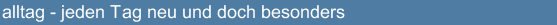 Alltag - ist bunt, klar bis nebelig, kommt immer wieder und ist trotzdem jeden Tag neu, Alltag hat auch Höhepunkte, die den Tag dann zum Feiertag machen. Alltag bedeutet Kontakte, Begegnungen und Erfahrungen..., Alltag ist der größte Teil unseres Lebens, alle Tage machen wir Erfahrungen die das künftige Leben beinflussen.